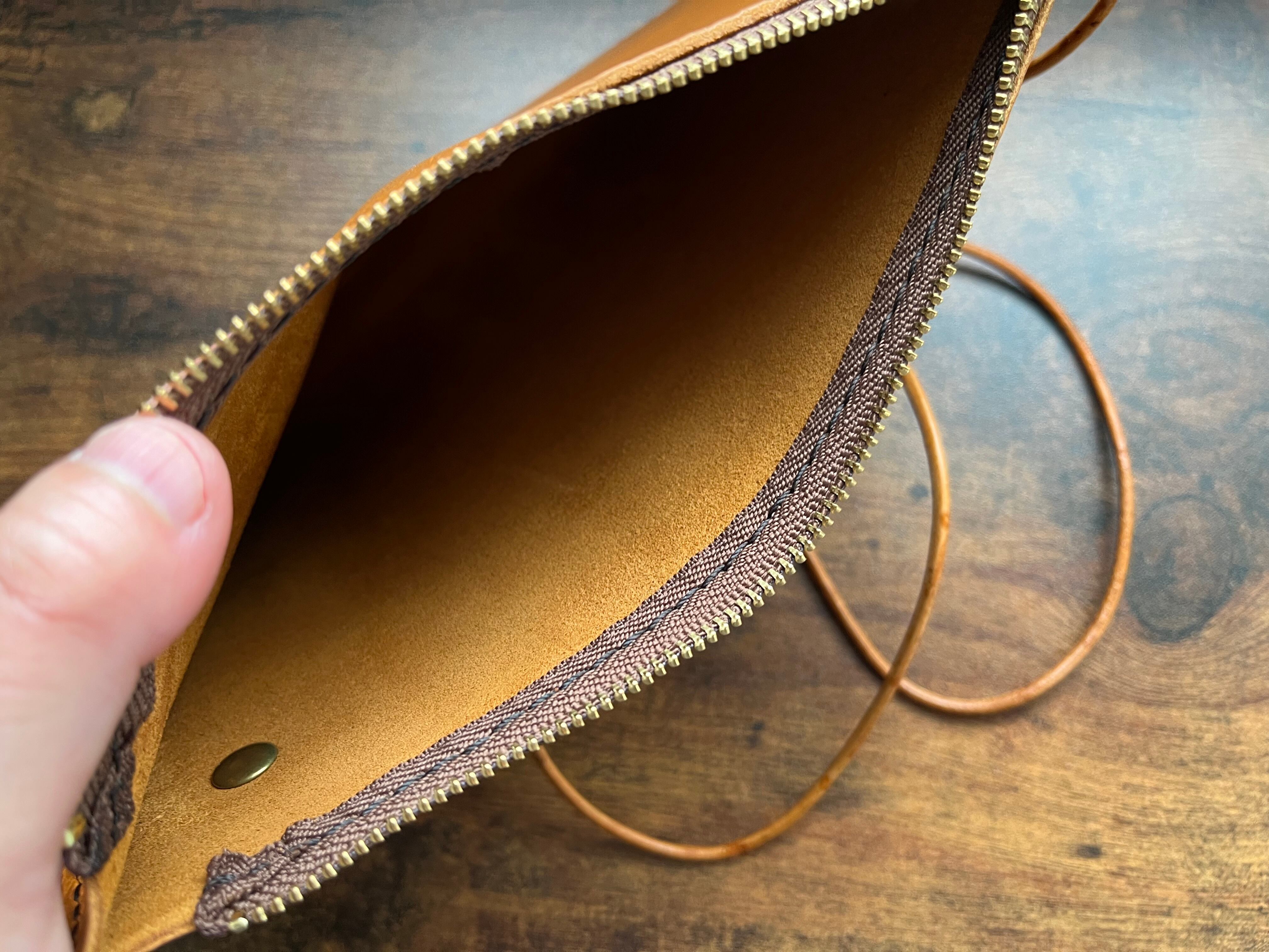 ファスナー付きで手縫いのハンドメイドバッグです!